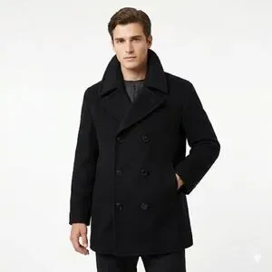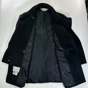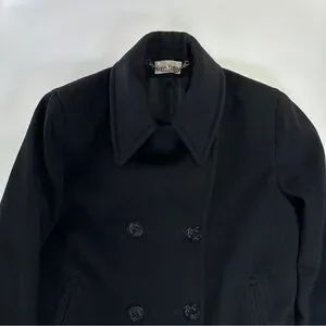 vintage peacoat, john weitz coat, wool blend peacoat, nautical wool coat, anchor button peacoat, black wool coat, made in usa coat, vintage menswear, classic peacoat, double breasted coat, winter outerwear, heritage outerwear, minimalist outerwear, structured wool coat, vintage american made, mens peacoat, tailored wool coat, cold weather coat, timeless style, nautical coat, wool jacket, classic menswear