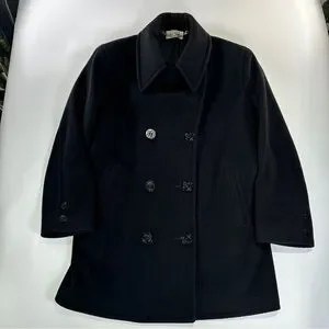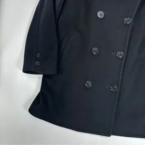John Weitz Peacoat Wool Blend Nautical Black Vintage USA Large