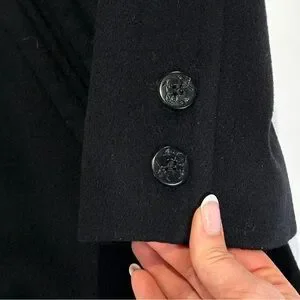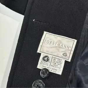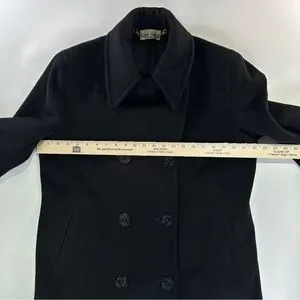 John Weitz vintage nautical peacoat in black featuring a classic double breasted silhouette with anchor buttons and a structured wool blend, made in the USA.