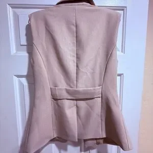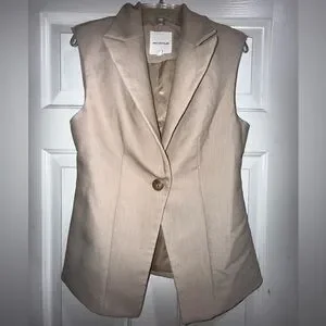 Avec Les Filles Beige Sleeveless Blazer Vest Tailored Minimalist Chic XS
