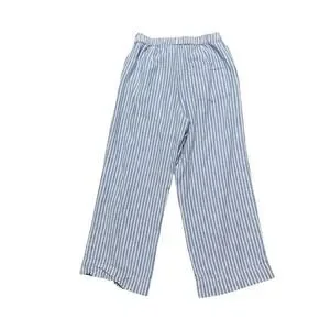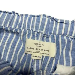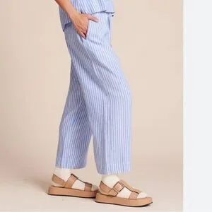 These Trovata bottoms feature a classic blue and white stripe pattern, crafted from a light, breathable fabric ideal for casual wear. The relaxed, wide-leg silhouette and elastic waistband ensure comfort and ease, making them perfect for warm-weather outings.