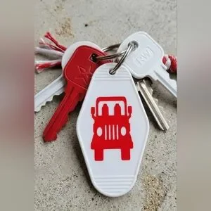 Upgrade your "Jeep Life" aesthetic! 🚙💨 This retro-style motel keychain is the ultimate accessory for any Jeep enthusiast. Featuring the iconic front-grille silhouette in a bold red on a classic white background, it’s the perfect blend of vintage nostalgia and off-road pride.