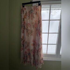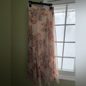 ❤️Beautiful Cream Pink Cottage Core Maxi Skirt With Beading and Lettuce Trim Hem