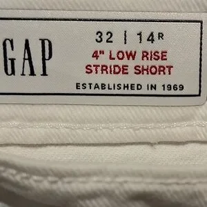 GAP women's denim shorts in white. Distressed details with a frayed hem. Five-pocket styling and belt loops. Casual, easy-to-wear summer staple.