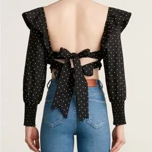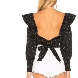 MISA Los Angeles Kayly Black Polka Dot Open Back Ruffle Cotton Crop Top Sz S. 23