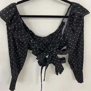 Kayly Black Polka Dot Open Back Ruffle Cotton Crop Top Sz Small Women’s