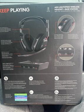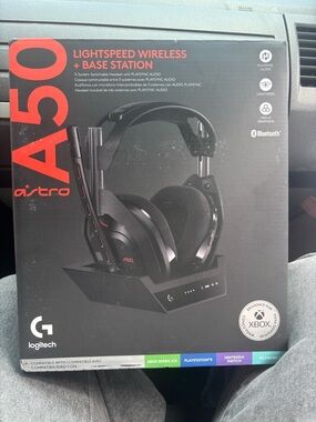 adidas over-ear wireless headset with red accent details. Cushioned earcups and adjustable headband. Built-in boom microphone for clear voice. USB base station shown for charging and connectivity.