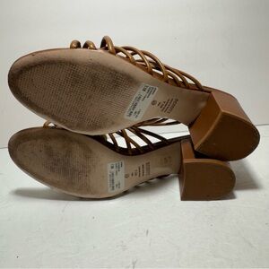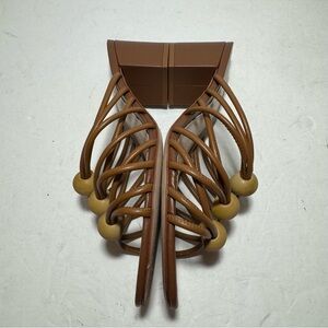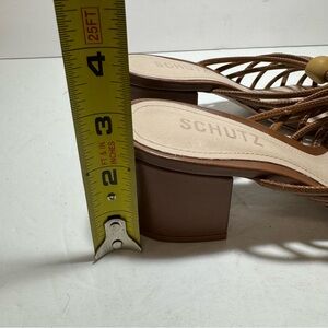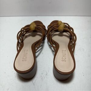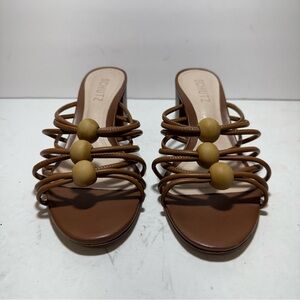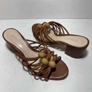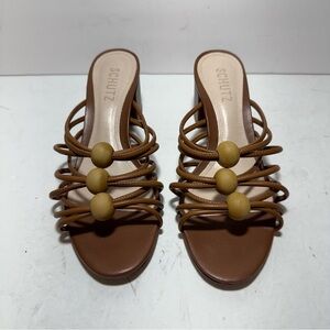 SCHUTZ Roanna Strappy Wood-Bead Brown Slide Block Heel Sandals Size 7.5