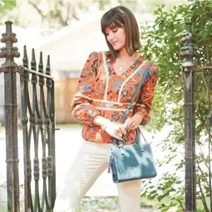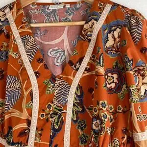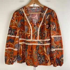 tags: spartina 449 marcelle blouse orange floral blouse tree of life print blouse womens medium casual top vacation top elevated casual womens fashion
