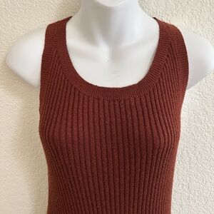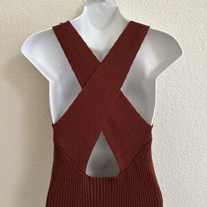 Anthropologie Elle Ribbed Cross Back Rust Brown Stretch Bodycon Dress Sz Medium