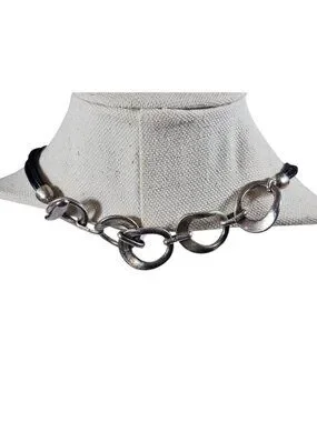 Premier Designs Silver Tone Open Circle Pendant Necklace Multi Strand Black Cord