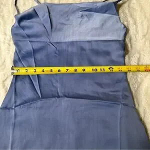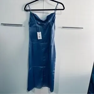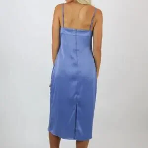 draped neckline New silky blue slip dress, perfect as a bridesmaid or wedding guest this summer. Great for layering pair with a blazer for professional look to night wear. Wear to work with a tailored suit jacket and heels. Great at the beach with sandals or flip flops. Amazing for portraits or coastal resort vacation wear.