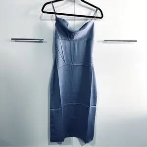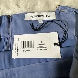 We Wore What Size 2 Silky Blue Dress Midi Draped Party Bridesmaid City Wedding