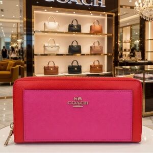 Coach Two-Tone Pink & Red Zip Wallet EUC