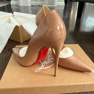 Christian Louboutin Nude Patent Pointed-Toe Stiletto Pumps