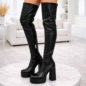 π₯ Thigh-High Black Platform Boots β Double Sole π₯
