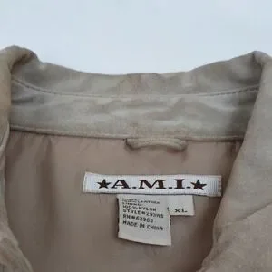 A.M.I. Genuine Leather Button Front Jacket Tan Beige XL