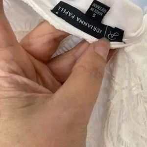 Adrianna Papell White Lace top with sheer short sleeve S Designer