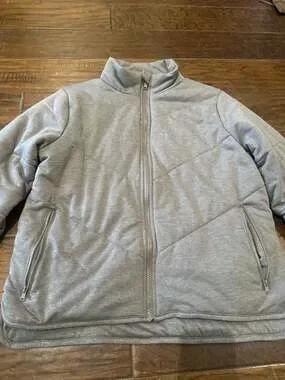 Three Dots Women's Gray Quilted Step Hem Full-Zip Knit Jacket Size M
