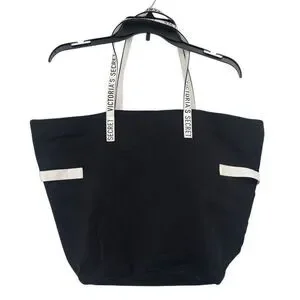 Victoria’s Secret Large Tote Bag Black White Canvas Logo 2018 Collectible