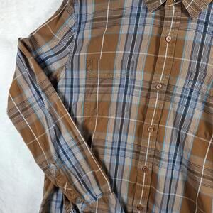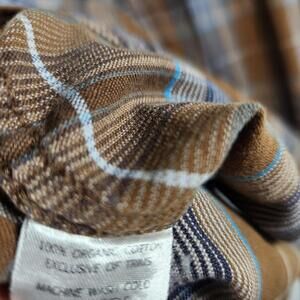 Toad & Co Brown Plaid Long Sleeve Button Up Shirt Size Large Organic Cotton