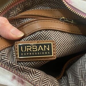 Urban Expressions Tie-Dye Canvas Tote with Brown Leather Handles