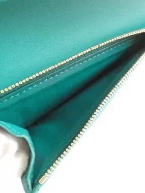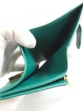 This is an authentic Louis Vuitton Taurillon LV Vertical CP Wallet in a rich, green hue. The pebbled leather construction features the iconic Louis Vuitton 'LV' logo hardware, adding a touch of signature sophistication to this compact and practical accessory.