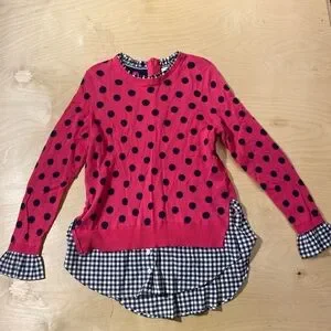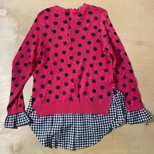 crown & ivy Pink Polka Dot Layered Sweater with Navy Gingham Medium (QW)