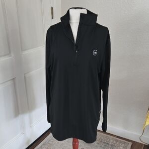 Vineyard Vines black half-zip pullover dress with a relaxed fit. Lightweight, breathable fabric for everyday wear. Easy to layer and style for casual outings. Features subtle Vineyard Vines logo and high collar for added coverage.