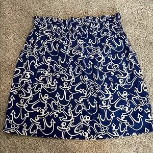 Lilly Pulitzer Blue Anchor Skirt Small Elastic Waist Pockets Coastal Nautical