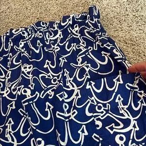 Adorable Lilly Pulitzer skirt in a bold blue and white anchor print—perfect for a coastal, nautical, or vacation-ready look.