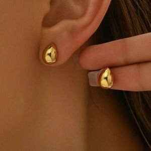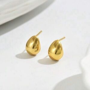Gold Plated Stainless Steel Minimal Gold Teardrop Stud Earrings