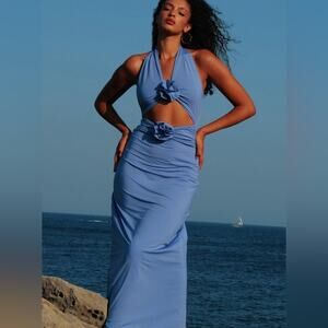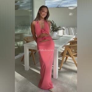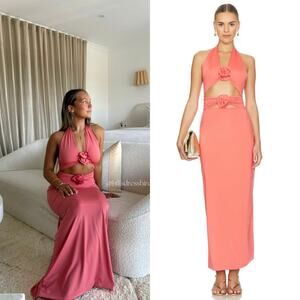 MAYGEL CORONEL Vaupes Dress in Tropical Pink Coral Halter Maxi Dress