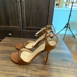 Kate Spade brown leather sandals with a single front strap and adjustable ankle strap. Clean, minimalist silhouette. Smooth leather upper and cushioned footbed. Versatile for day or evening wear. Brand new, never worn. Includes shoe box.