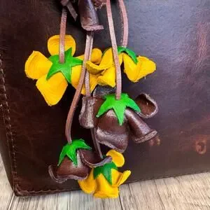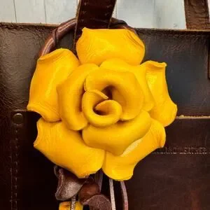 Leather Yellow Rose Purse Charm Genuine Leather Flower Bag Charm NEW FAST SHIP