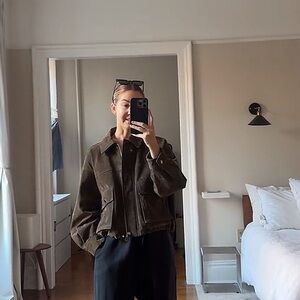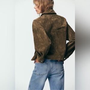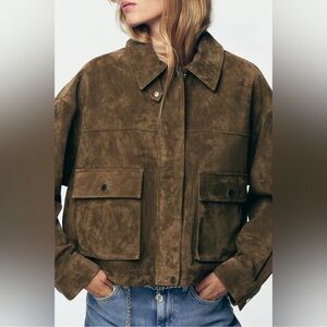 Zara khaki suede jacket in size large - i’m normally a size 2 (US) so this runs small