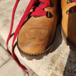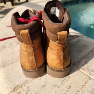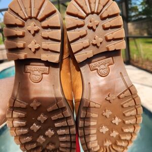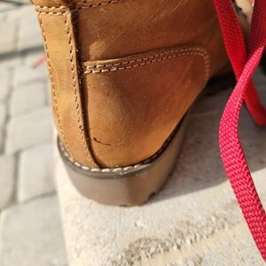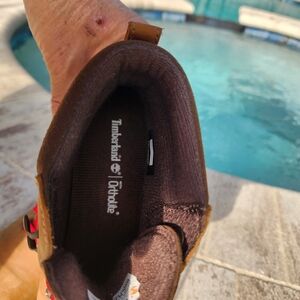 Timberland boots featuring OrthoLite® footbeds offer a blend of rugged, waterproof durability and cushioned, breathable comfort, designed for all-day wear. They feature premium leather, PrimaLoft® insulation, and moisture-wicking, lightweight insoles to support the foot. there are minor scuffs that can be removed with cleaner. priced to sell in good used condition.