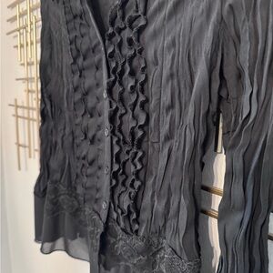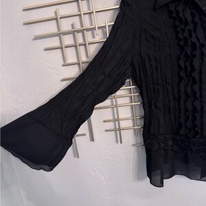 Apostrophe Petite Black Sheer Ruffle Lace Blouse M