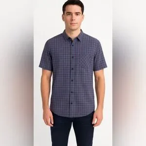 Stylish men's shirt featuring a blue checkered pattern. Perfect for casual or semi-formal occasions.