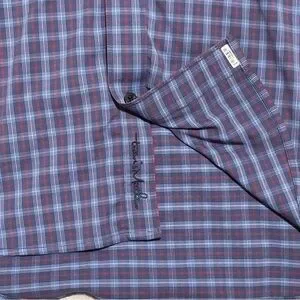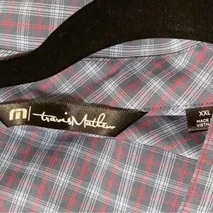 Travis Mathew Quiet-Luxury Micro-Plaid Golf-Core Stretch Shirt Preppy Blue XXL