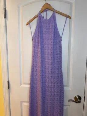 Alice + Olivia Jone lavender midi crochet halter dress, size XL, like new