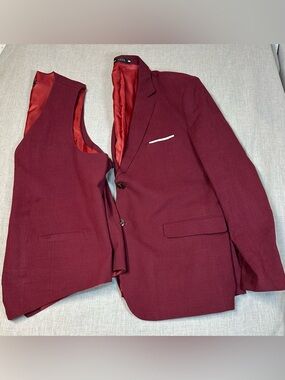 Source Unknown Men's Burdundy Two-Piece Suit Jacket & Vest