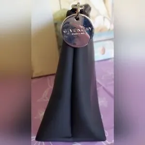 *Genuine Givenchy black rubbery leather cosmetic parfum pouch in like New Condition Features a logo charm zipper pull.