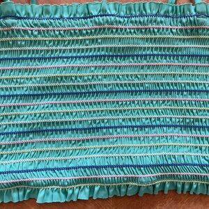 Dive into summer with this vibrant turquoise bikini set from Old Navy, perfect for pool days or beach adventures. The bandeau-style top features delicate ruching and adjustable shoulder ties for a flattering, customizable fit. Paired with classic bikini bottoms, this set offers a sleek, comfortable silhouette that’s ideal for any sunny-day occasion.