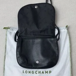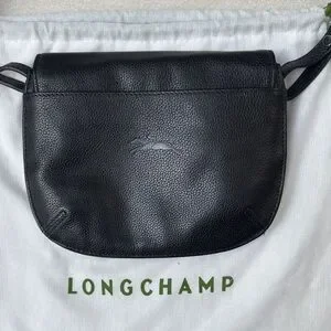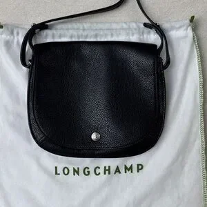 Longchamp Le Foulonne Black Pebbled Leather Crossbody Saddle Bag