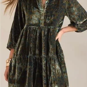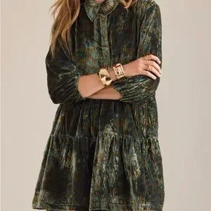 The Bettina Tiered Shirt Dress by Maeve: Mini Velvet Edition