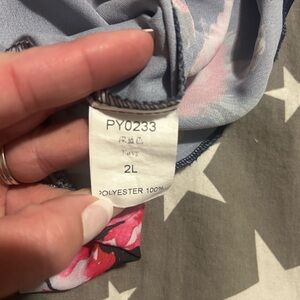 Dark blue and pink floral off the shoulders short sleeve top.