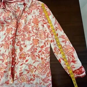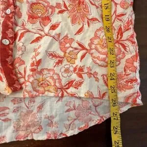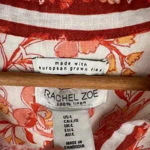 Rachel Zoe Linen Flax Button Up Top Size Large Summer Spring Lightweight Floral