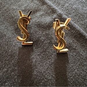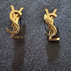 Signature YSL logo earrings. Sleek designer finish and bold brand presence. Please note, these are an Upcycled from an authentic YSL item.