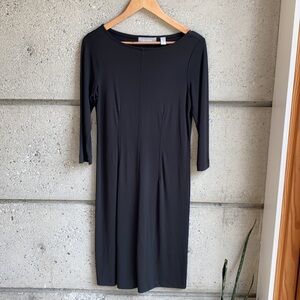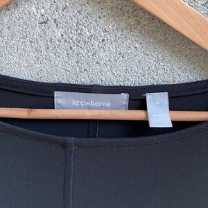 Classic little black dress with long sleeves in a medium. Brand is Liz Claiborne. Great little dress to have in the mix for office attire. Hits below the knee and has great stretch for mobility. Gently worn and still in good condition. Please feel free to request measurements you may need or send questions you have before purchasing.
